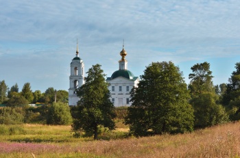 Строительство началось в 1829 году и завершилось в 1837 году освящением нового храма во имя Иоанна Богослова. В 1848 году рядом с церковью была построена каменная колокольня, ставшая важной архитектурной доминантой села. В 1858 году, благодаря стараниям коллежского советника Ивана Ивановича Элпидинского, в храме были устроены два теплых придела: во имя священномученика Власия и в честь иконы Божией Матери «Всех скорбящих Радость».