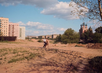 В 1673 году царь Алексей Михайлович, часто посещавший эти места во время охоты и паломничеств в Троице-Сергиев монастырь, повелел заложить новую церковь в честь чтимой на Руси Тихвинской иконы Божией Матери. Строительство храма было завершено в 1680 году, уже после смерти царя. Торжественное освящение состоялось с участием патриарха Иоакима и царя Фёдора Алексеевича, который преподнёс храму список Тихвинской иконы Божией Матери византийского письма.