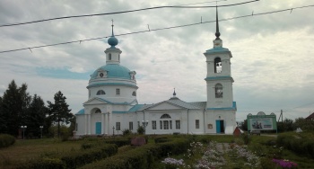 В связи с ветхостью деревянного храма и увеличением численности населения, в 1907 году было начато строительство нового каменного храма. К 1914 году здание было завершено: внешняя отделка и железная кровля были полностью выполнены. Архитектурный облик храма соответствует стилю русской эклектики начала XX века. Здание выполнено из кирпича, имеет вытянутый прямоугольный план с полукруглой апсидой и трапезной. Колокольня представляет собой четырёхъярусную башню с арочными проёмами и декоративными элементами. В храме было два престола: главный — во имя Святой Троицы, и придельный — во имя святых благоверных князей Бориса и Глеба, оба расположенные в одном алтаре.