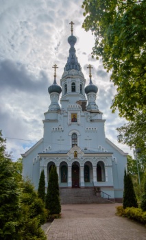 Каменный собор строился с 1875 по 1879 год по проекту архитектора Давида Гримма под руководством Христиана Грейфана. Освящение состоялось 24 февраля 1880 года. Нижний придел во имя иконы Божией Матери «Утоли моя печали» освятили в 1888 году, правый придел верхнего храма во имя блаженного Николая Кочанова – в 1908 году, а северный придел Казанской иконы Божией Матери – в 1919 году. В 1902 году храм получил статус собора.