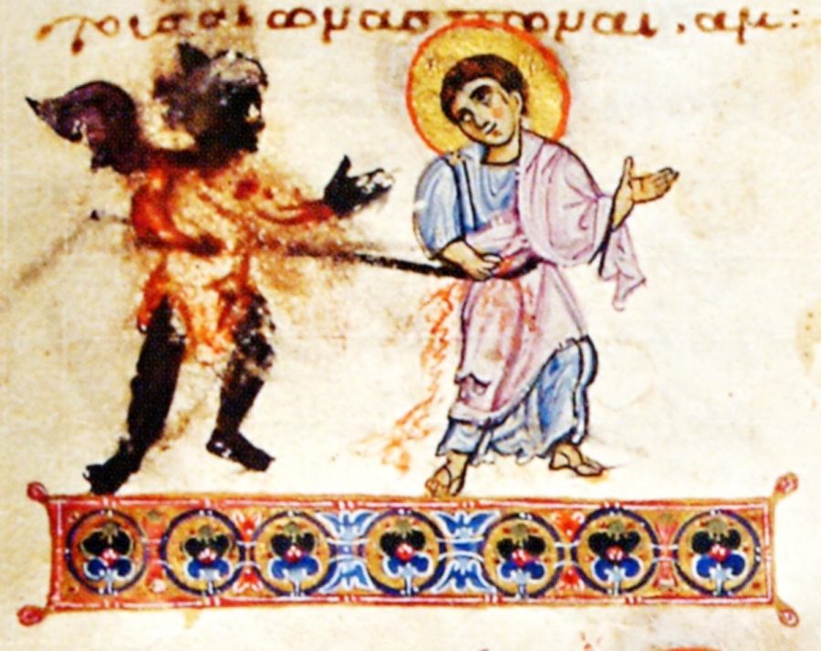 Мучение ап. Фомы. Миниатюра Минология на Октябрь. Византия. Около середины XI в. ГИМ. Москва.