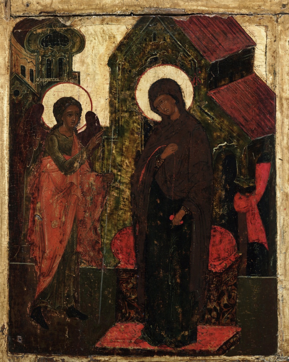 Эта икона посвящена Благовещению Пресвятой Богородицы.
