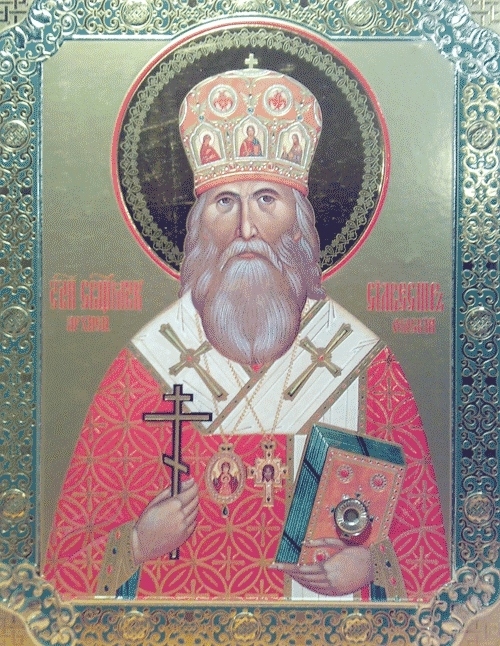 Исповедник Сильвестр (Ольшевский), архиепископ Омский. Икона с мощевиком священномученика Сильвестра, архиепископа Омского и Павлодарского.
