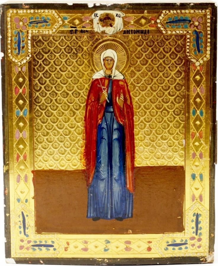 Икона Мученица Антонина Никейская. Св. мученица Антонида. Последняя четверть XIX в. Дерево, смешанная техника. 18 х 14,5 см. Частное собрание.