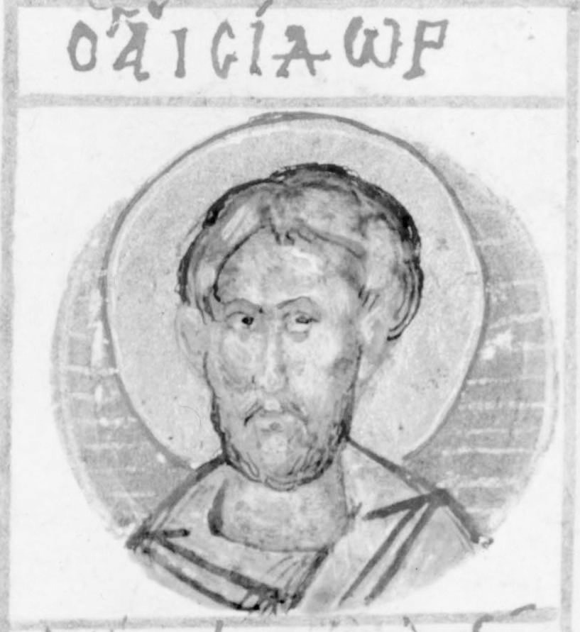 Мч. Исидор. Миниатюра. Афон (Иверский м-рь). Конец XV в. C 1913 года в Российской Публичной (ныне Национальной) библиотеке в Санкт-Петербурге.
