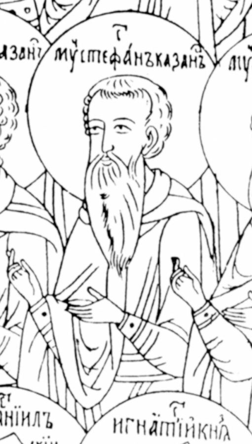 Русские святые (фрагмент). Рисунок (перевод с иконы). Россия. 1814 год. Лист 8. Музей СпбДА, табл. 63. Ретушировано.