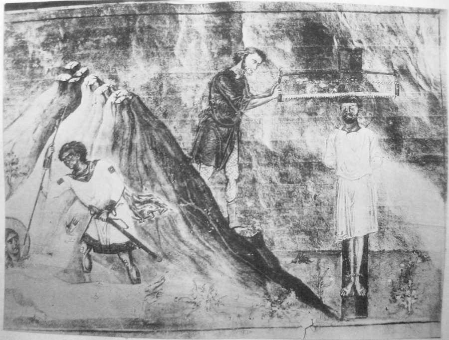 Мчч. Фифаил и сестра его Вивея. Миниатюра Минология Василия II. Константинополь. 985 г. Ватиканская библиотека. Рим.