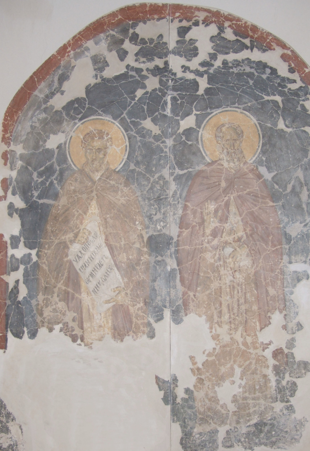 Прп. Акакий. Фреска ц. Спаса на Ковалёве в Новгороде. 1380г