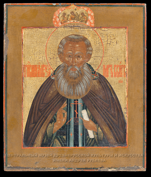 На иконе изображён Преподобный Алекса́ндр Свирский, игумен.