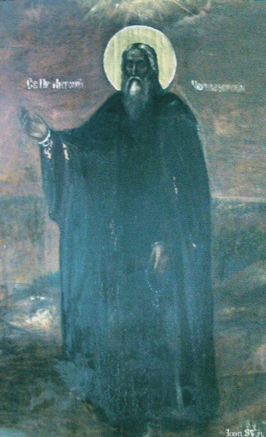 На иконе изображён Преподобный Анто́ний Черноезе́рский.