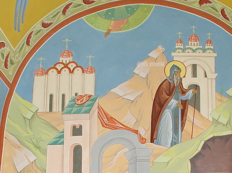 Преподобный Антоний Печерский. Св.преп. Антоний Киево-Печерский . Роспись трапезного храма. Покрово-Тервеничский женский монастырь