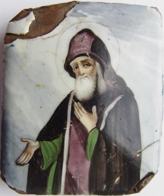 Преподобный Арсений Коневский. Св. Прп. Арсений Коневский Чудотворец. Финифть. 4,7 х 4,0 см. Частное собрание