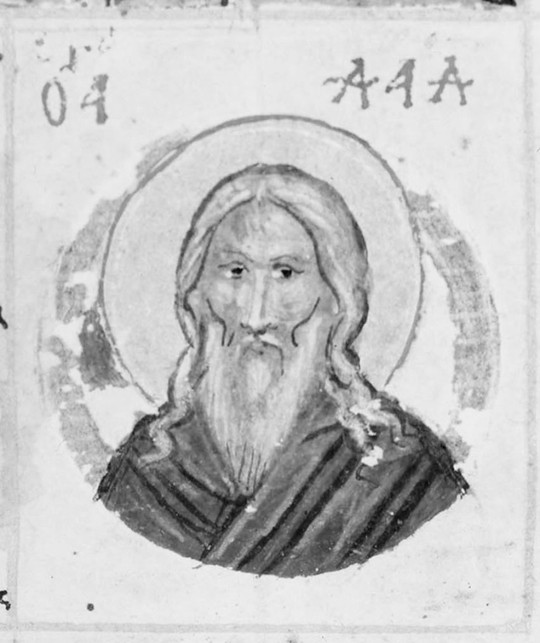 Прп. Давид. Миниатюра. Афон (Иверский м-рь). Конец XV в. C 1913 года в Российской Публичной (ныне Национальной) библиотеке в Санкт-Петербурге.