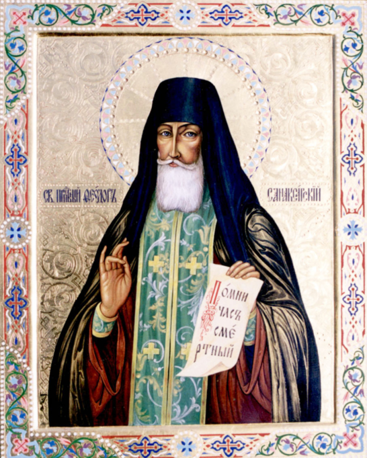 На иконе изображён Преподобный Фео́дор Санаксарский.