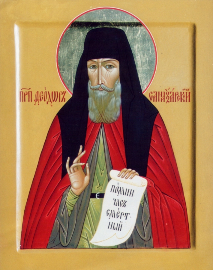 На иконе изображён Преподобный Фео́дор Санаксарский.
