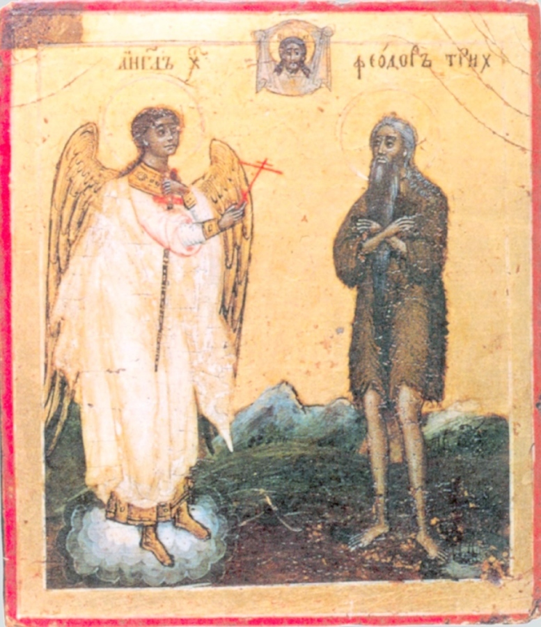 Ангел и прп. Феодор Трихина. Икона. Урал. XIX в.