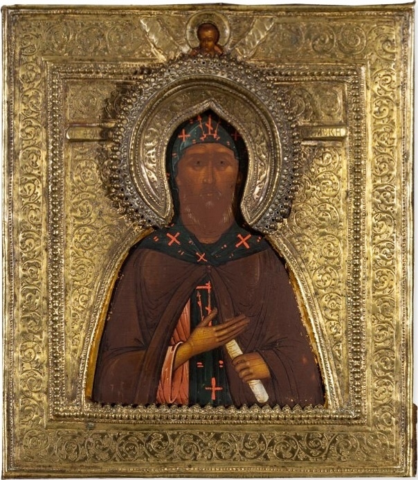 Преподобный Феодосий Тотемский. Оклад: 1900 г., Вологда. Дерево, темпера. 22.5 х 20 см. Частное собрание.