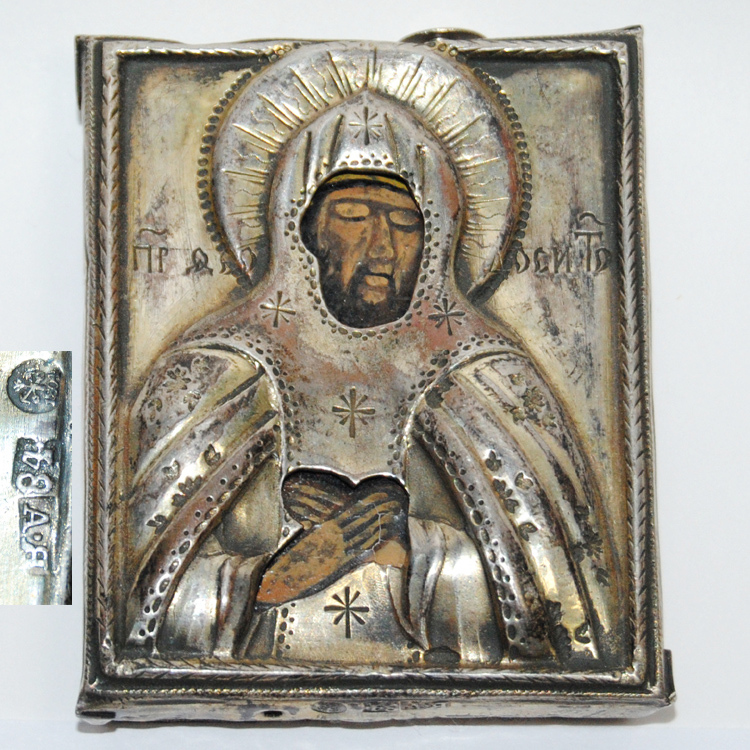 Икона в серебряном окладе Преподобный Феодосий Тотемский в гробу