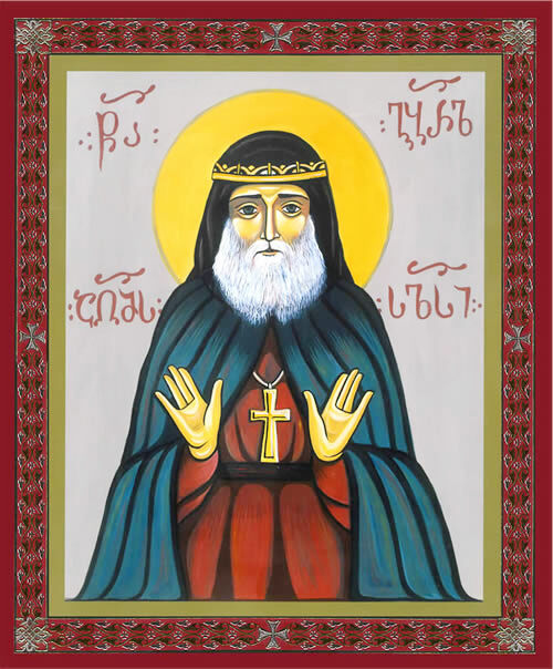 На иконе изображён Преподобный Гаврии́л (Ургебадзе) Самтаври́йский, архимандрит.