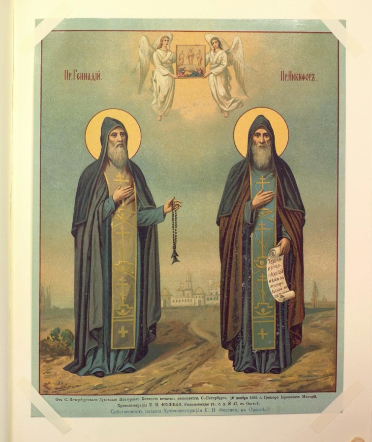 Преподобный Геннадий Важеозерский. Прп. Геннадий и Никифор. Альбом изображений святых икон издания хромолитографии Е.И.Фесенко в Одессе. Конец 19-го века