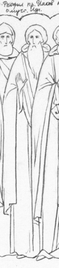Лицевые святцы русских святых. Октябрь (лист 3). Монахиня Иулиания (Соколова). Рисунок. Сергиев Посад. 1959-1962 гг. Выполнены по просьбе святителя Афанасия Ковровского /Сахарова/ (Письмо от 30 сентября 1959 г.). Частное собрание.