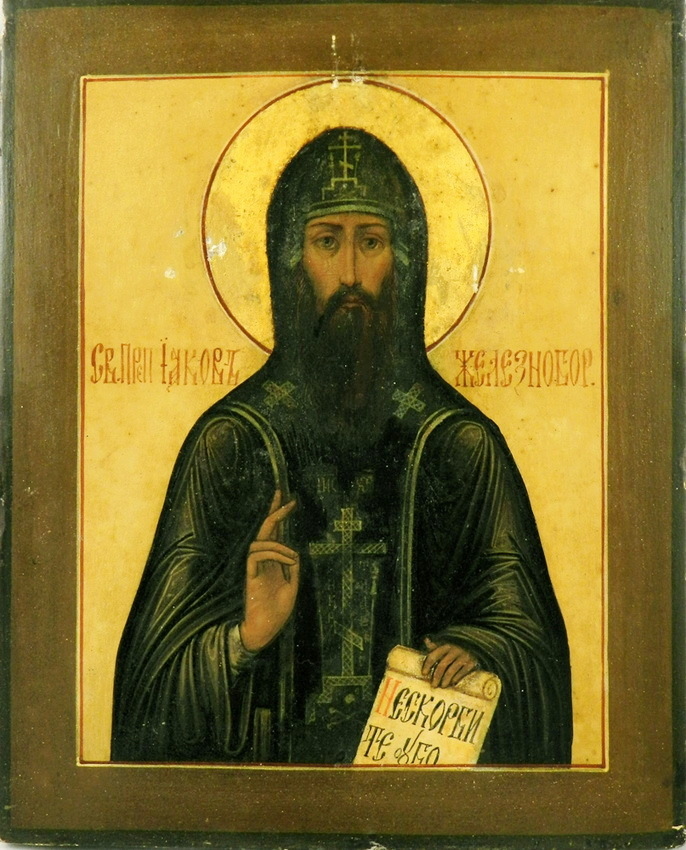 Преподобный Иаков Железноборовский. Святой Иаков Железноборовский, Икона:дерево,левкас,масло. последняя четверть XIX века