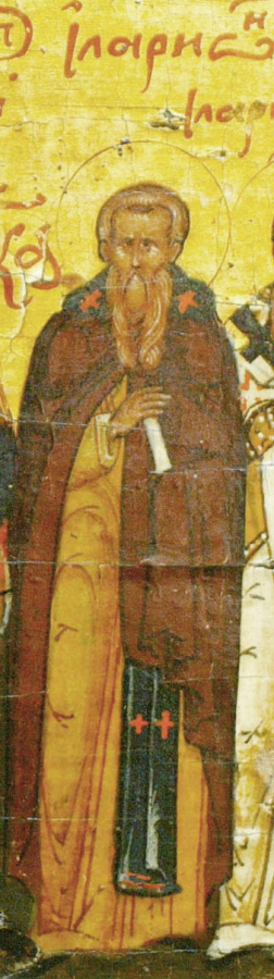 На иконе изображён Преподобный Иларио́н Великий.