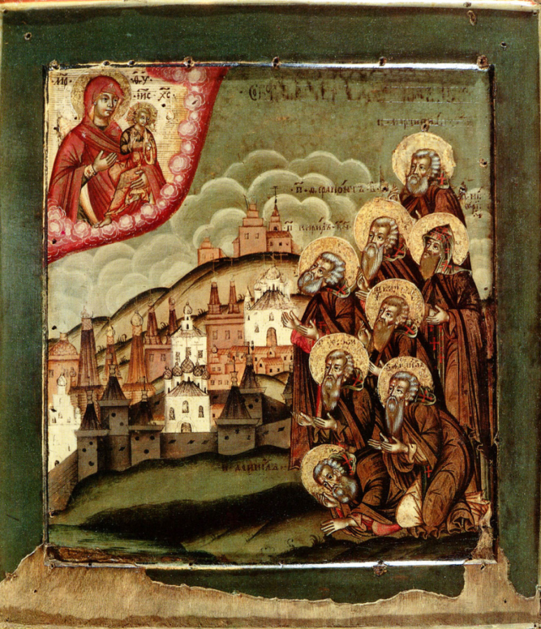 Собор Белоезерских преподобных. Икона. Россия. Начало XVIII в. 32,7 х 28,5. ЦМиАР. Москва.