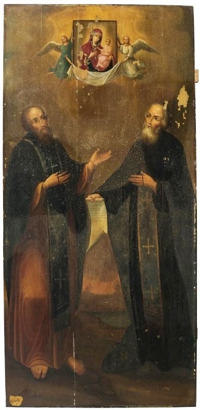 Свв. Прп. Кирилл Новоезерский и Кирилл Белозерский. XIX век. Дерево, масло. 145 х 68 х 3,2 см. Кирилло-Белозерский историко-архитектурный и художественный музей-заповедник.