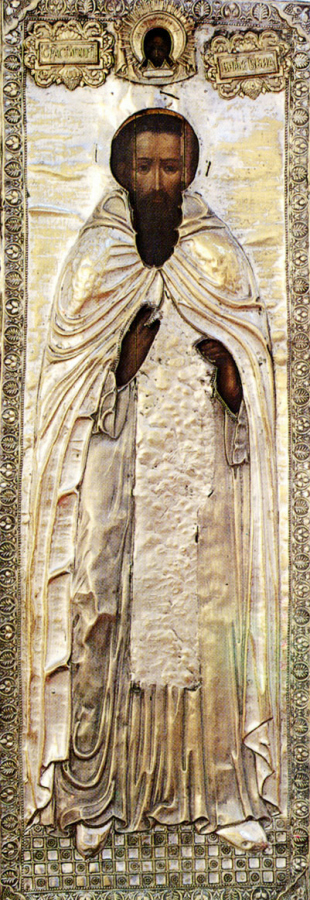 На иконе изображён Преподобный Ле́вкий Волоколамский.