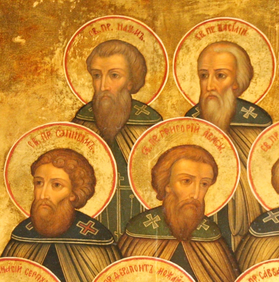 Собор Радонежских святых (фрагмент). Икона. Москва. XIX век. Восточная грань северо - восточного столба Успенского собора. Троице-Сергиева лавра.