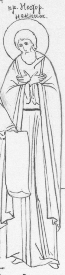 На иконе изображён Преподобный Не́стор Летописец, Печерский.