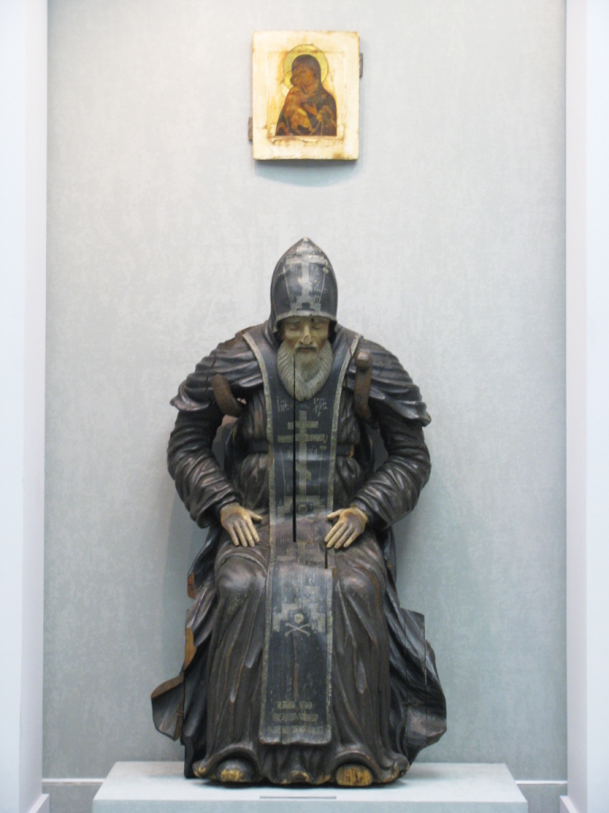 Деревянная скульптура преподобного Нила Столобенского, почитается чудотворной. XVIII век.