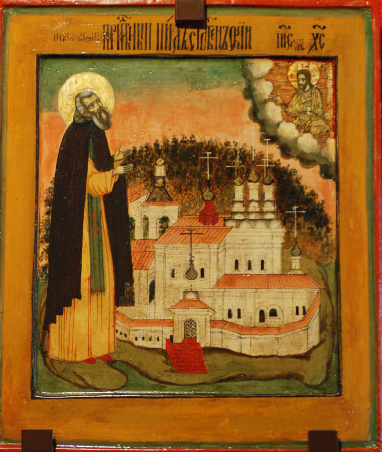 Преподобный Нил Столобенский на фоне монастыря, Центральная Россия, XVII