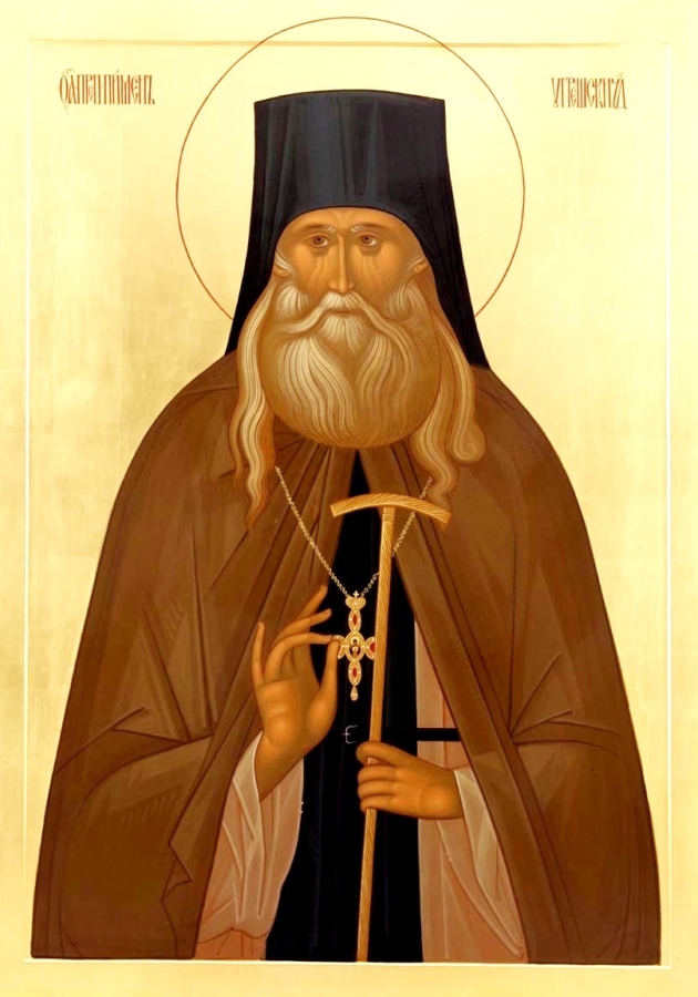 На иконе изображён Преподобный Пи́мен Угре́шский (Мясников), архимандрит.