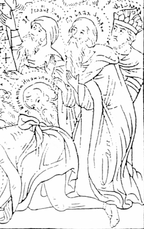 Собор Московских святых (фрагмент). Рисунок (перевод с иконы). Россия. 2-я пол. XVII века. Перевод с иконы выполнен В.П. Гурьяновым.