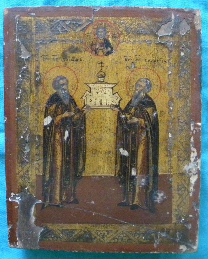 Прпп. Зосима и Савватий. Дерево,темпера,левкас.В частном пользовании ,с последующей передачей в ЦАМ ПСТГУ г.Москвы.