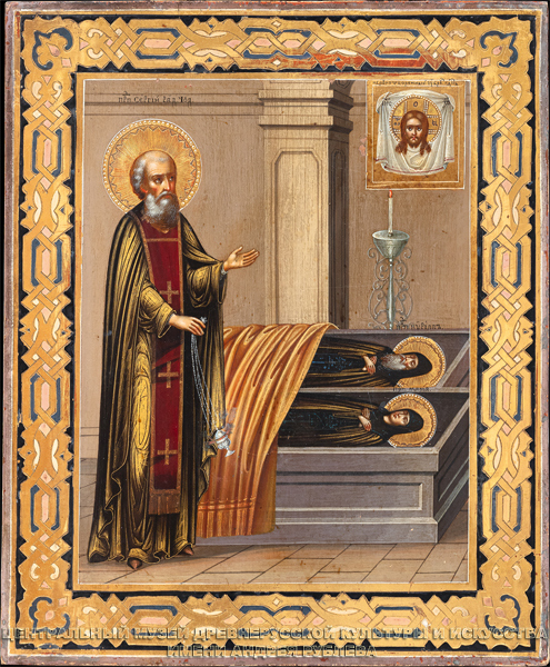На иконе изображён Преподобный Се́ргий Радонежский, игумен.