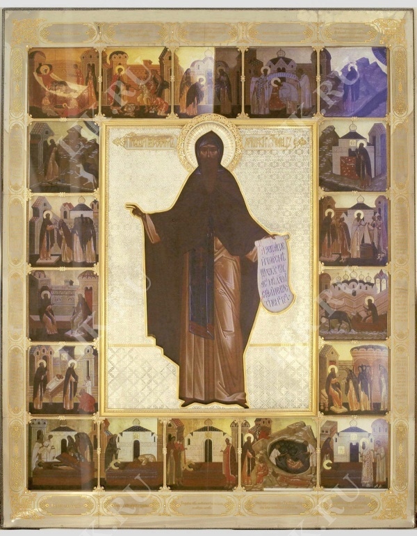 Преподобный Варлаам Хутынский. Преп. Варлаам Хутынский. Кон. XIX - нач. XX века. Дерево, золочение, темпера. 17.5 х 22 см. Частное собрание