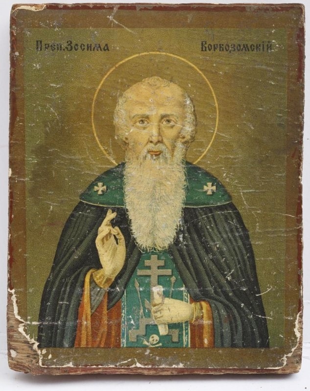 Преподобный Зосима Ворбозомский. Начало ХХ века. Хромолитография. 12,6 х 9,9 х 1,2 см. Местонахождение: Филиал "Музей фресок Дионисия" федерального государственного бюджетного учреждения культуры "Кирилло-Белозерский историко-архитектурный и художественный музей-заповедник".