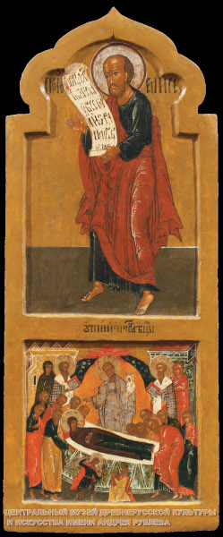 Эта икона посвящена Успению Пресвятой Богородицы.