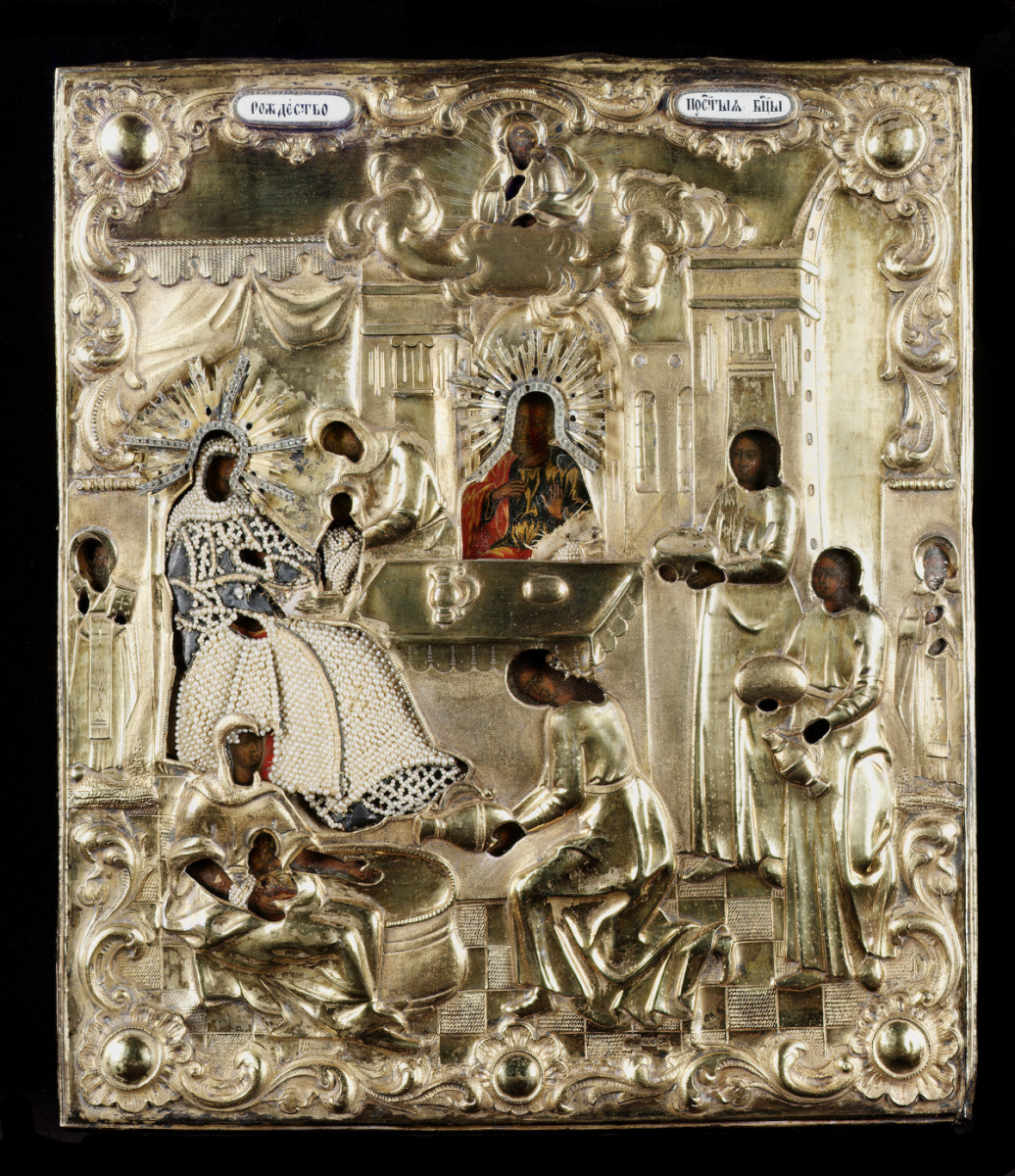 Эта икона посвящена Рождеству Пресвятой Богородицы.