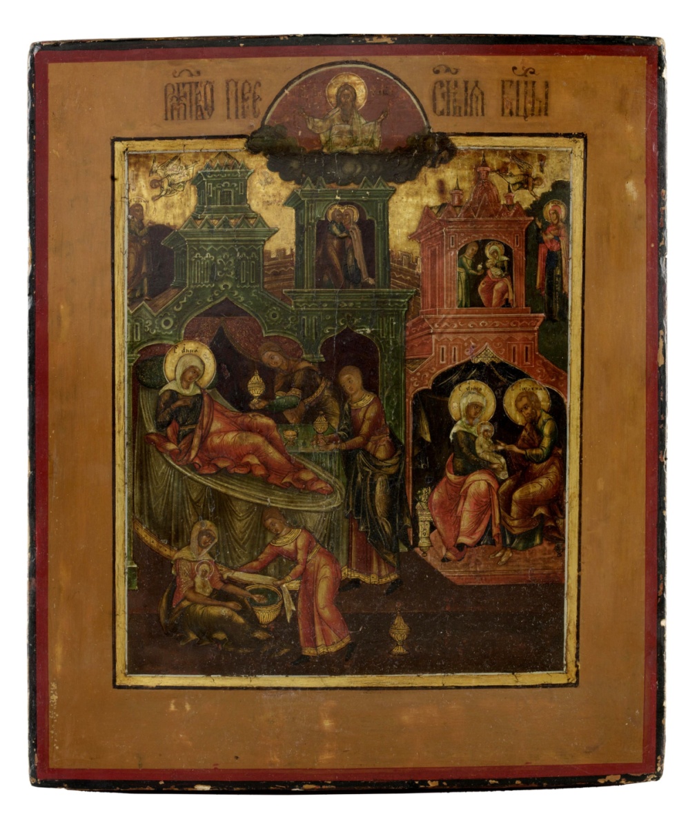 Эта икона посвящена Рождеству Пресвятой Богородицы.
