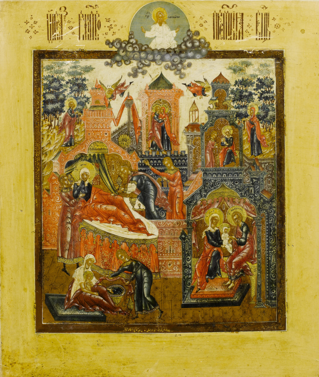 Эта икона посвящена Рождеству Пресвятой Богородицы.