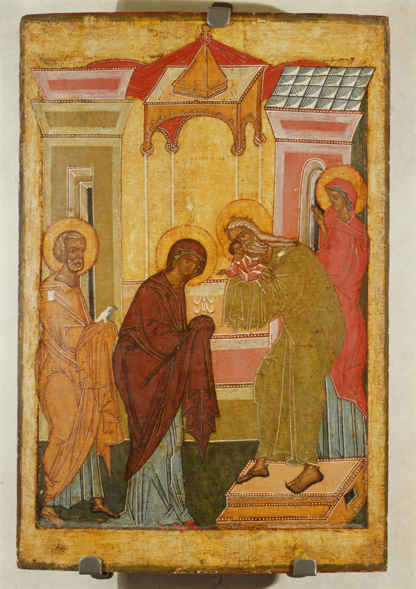 Эта икона посвящена Сретению Господню.