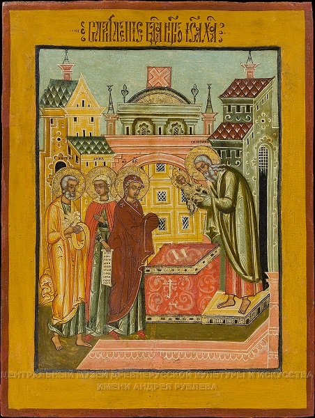 Эта икона посвящена Сретению Господню.