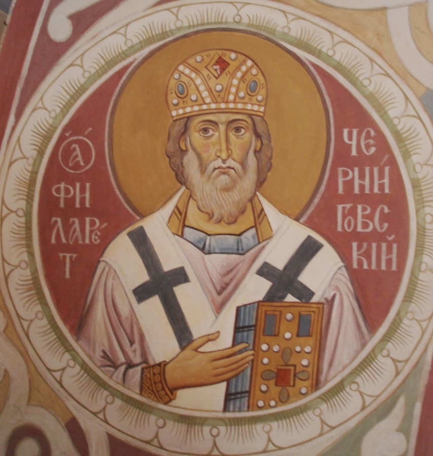 Свт. Филарет Черниговский. Солдатов А.Н. (Иконописная школа). Фреска. Святые врата Святогорской лавры. 2006 год.