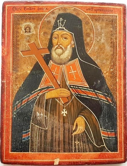 Икона Святитель Иннокентий (Кульчицкий), епископ Иркутский. Образ Святого Иннокентия Иркутского. 23,7 х 30,2 х 1,7 см. Частное собрание.