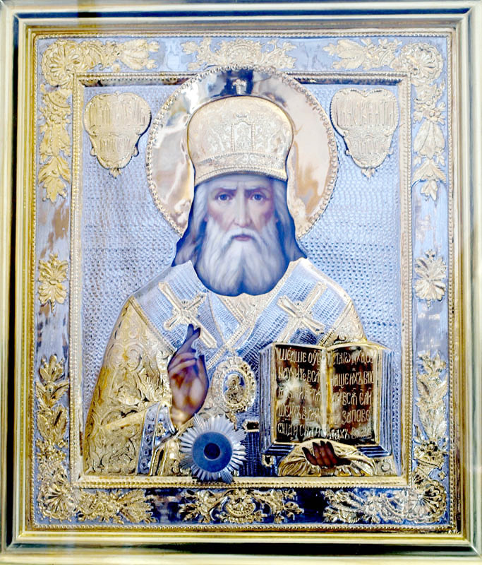 Святитель Иннокентий (Вениаминов), митрополит Московский. Икона святителя Иннокентия, митрополита Московского и Коломенского с частицей его мощей.