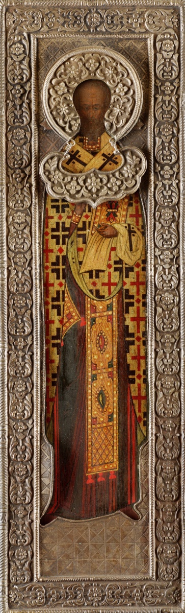 На иконе изображён Святитель Николай, архиепископ Мирликийский, чудотворец.